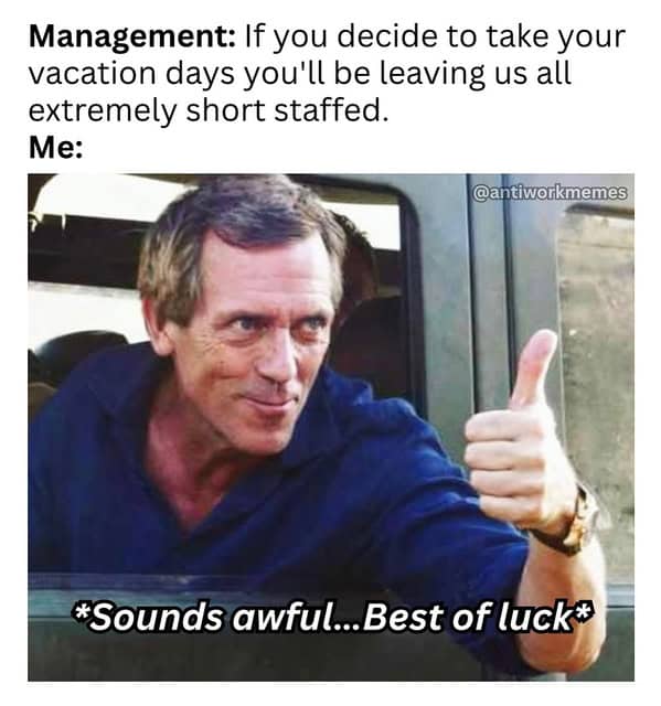 Let's face it, work is basically adult detention with coffee breaks. You wake up, get dressed, and willingly walk into a building full of people you’d never voluntarily hang out with. We call this "a career." And no matter how many motivational quotes your boss emails you, deep down we all know the real reward for hard work is just more work. The only genuine joy comes from secretly watching colleagues fail slightly worse than you or witnessing the printer jam when someone else urgently needs it. But we’re all stuck in this corporate hamster wheel, dreaming of lottery wins or early retirement while reality hands us performance reviews and passive-aggressive emails. So, here are 35 memes to remind you that while work might be a necessary evil, at least we can laugh about it—bitterly and quietly at our desks, of course.