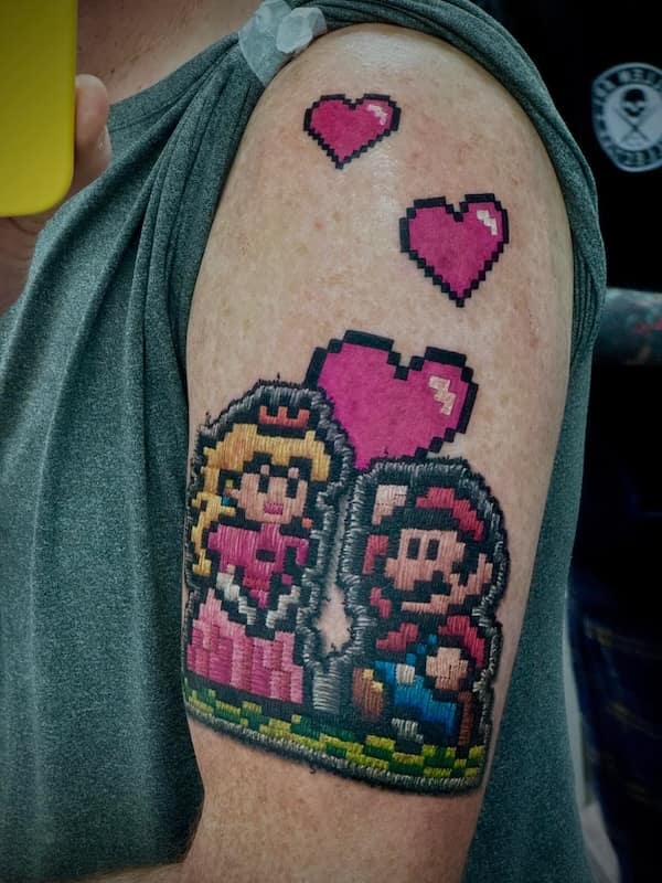Nerd note: the cross-hatch shading you’d use on a comic panel also sells the stitch effect here. That’s why cross-stitch tattoo pieces slap—pixel-like Xs play perfectly with gaming, floral, or folk motifs. You can go grandma-core roses, gamer sprites, or punk rock swallow patches and it still reads “stitched, not printed.”
