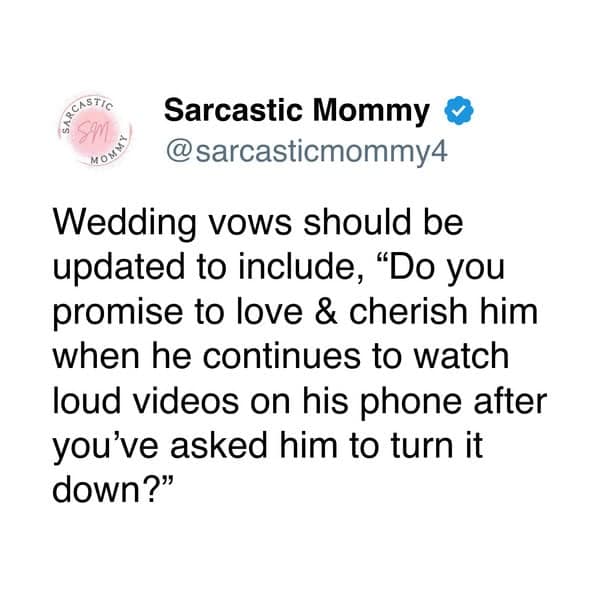 Wedding data shows Saturdays remain the most popular day to get married, which is funny when you realize it is also the day most couples argue about errands. That little fact pairs nicely with this set of tweets. Real life sneaks into romance, then the jokes rescue the vibe. Save your favorites for the next time you need to defuse a conversation about laundry. Humor will not fold the clothes, but it will make folding them together less boring.