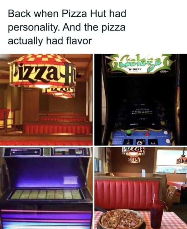 A nostalgia meme showing the perfect 90s night with Blockbuster, pizza, and an N64.