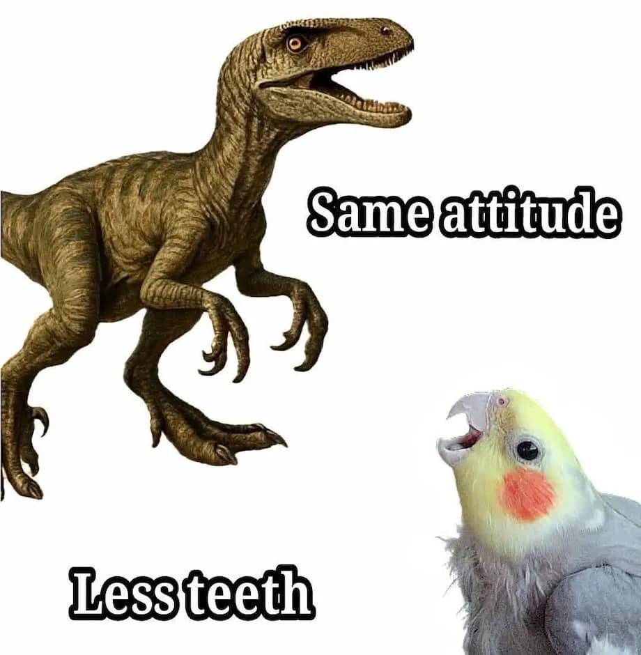 A funny meme of a cockatiel screaming with joy from inside a jar of birdseed.