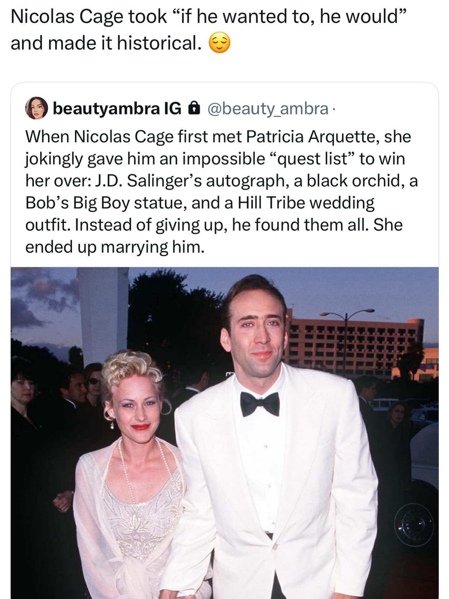 A funny meme from a tweet describing a very specific and chaotic dating fetish.
