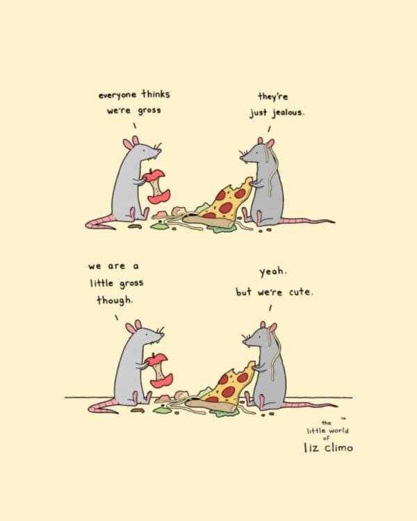Dark comics make me laugh, but nothing confuses my cold heart like a sweet joke that still lands. That is Liz Climo’s trick. She draws animals that say the kindest things and somehow it is devastating in the best way. Our focus keyword liz climo comics belongs because you will recognize the minimal lines, the cozy expressions, and the final beat that makes you clap in your head. The punchlines do not stab. They wink. You expect snark. You get sincerity that scores. It feels like a tiny betrayal of your cynicism, which is why you smile. These panels are proof that not every joke needs a villain. Sometimes a hedgehog and a bear can solve it with a snack and a nap. I know, it is disturbing how much that works on me too.