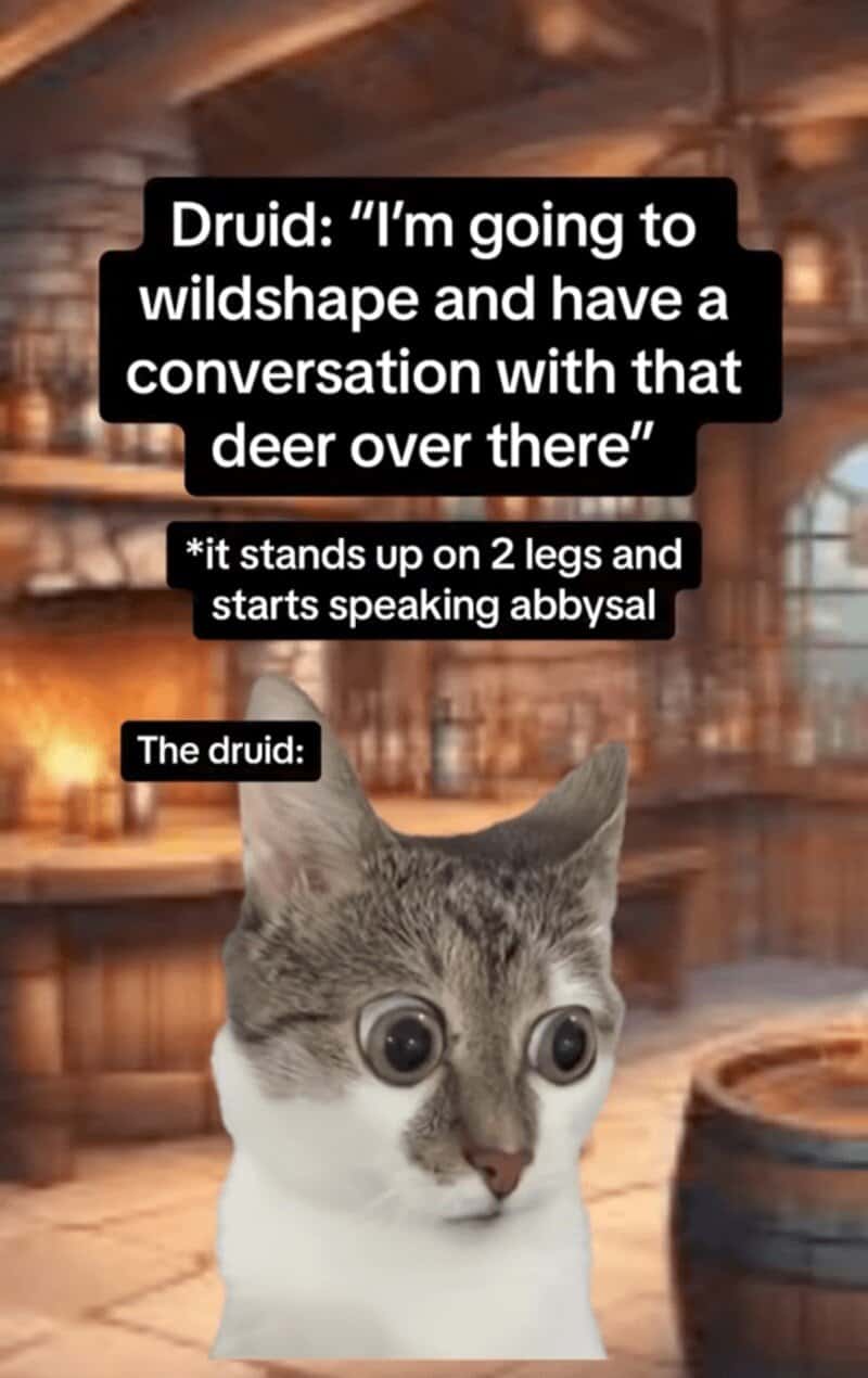 The first time I ran a D&D session as Dungeon Master, my players tried to seduce a gelatinous cube and I realized this game was not going to follow any rules—mine or Wizards of the Coast’s. As a lifelong nerd, I live for the absolute chaos, wild imagination, and utter nonsense that comes from gathering around the table (ir DnD memes group chat) for a Dungeons & Dragons game. Honestly, D&D memes are how I get through the week when my dice are cursed and my party is even worse.