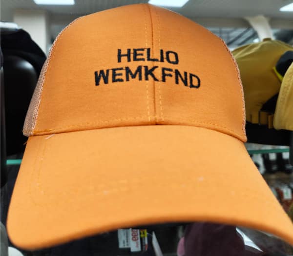 Black baseball cap embroidered “COLORAOD” instead of Colorado.