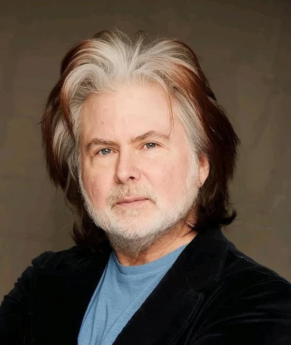 Man with shaved top and sides leaving a thick curly strip from crown to nape, like a mohawk-mullet hybrid.