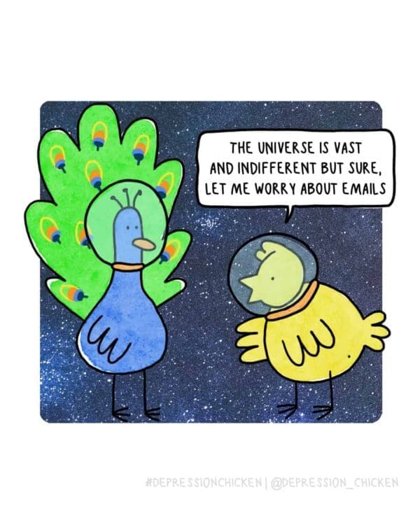 I was “between meetings” (staring at my keyboard) when a coworker DM’d a thread of dark humor comics by Depression Chicken, and suddenly my to-do list grew legs and walked away. It’s amazing how a four-panel gut punch can feel like therapy with punchlines—and yes, I screenshotted three for “later” like that’s a setting in Outlook.
