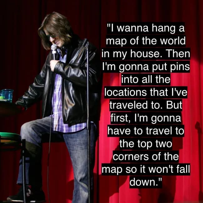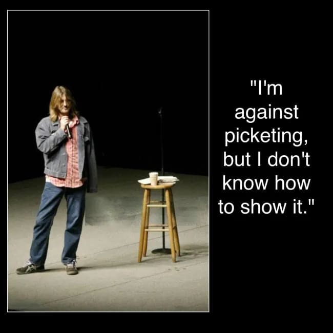 Here are 31 classics and deep cuts curated for portable joy. Expect Mitch Hedberg quotes, one liner jokes, and stand up comedy quotes that still feel brand new. Send to the friend who communicates in setups and tags.