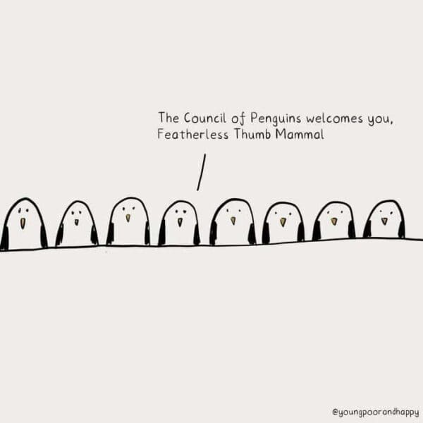 Editor brain talking here: cadence matters. In a set like this, I’m chasing variety—one visual eye-roll, one language trick, one quietly absurd premise—so your attention gets a jog instead of a sprint. That balance keeps single panel comics feeling fresh across feeds and time zones.