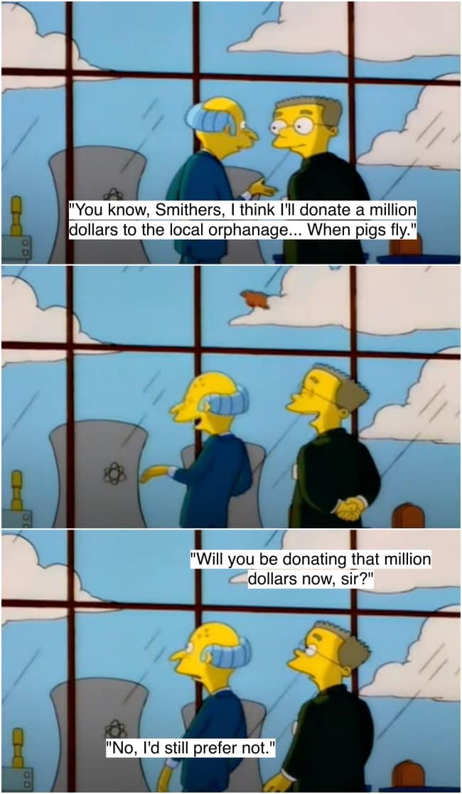 An iconic Mr. Burns quote where he complains that another billionaire doesn't have enough contempt for the common man.