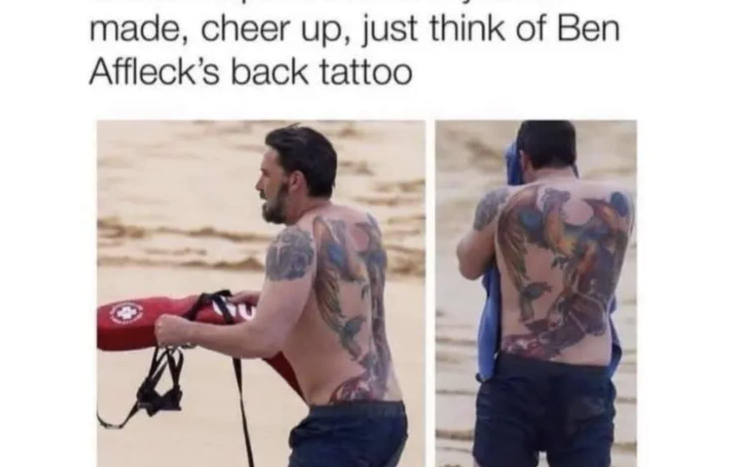 A funny meme cheering you up by reminding you of Ben Affleck's famously terrible and massive phoenix back tattoo.