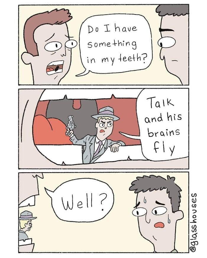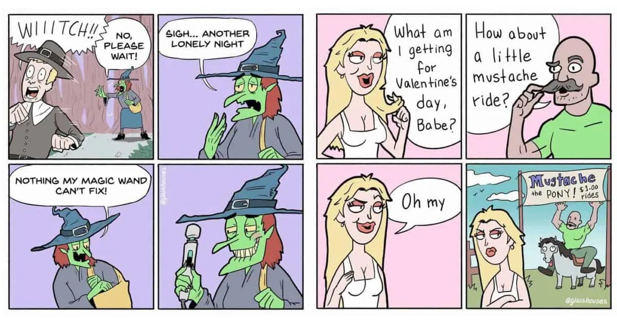Now that you’ve toured this dump of Glasshouses bleakery, you can feel the architecture: setup, micro-beat, sting, exhale. The jokes land because the caption economy is ruthless and the panel timing is surgical—soft linework smuggling sharp truths you’ll remember at the sink.
