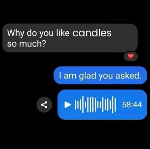Send a favorite to the friend who hoards three wicks and the roommate who enforces no burn zones. For a cozy spiral, browse scented candle memes, home decor memes, and fall memes. May your flame be steady, your matches plentiful, and your favorite scent miraculously on sale.