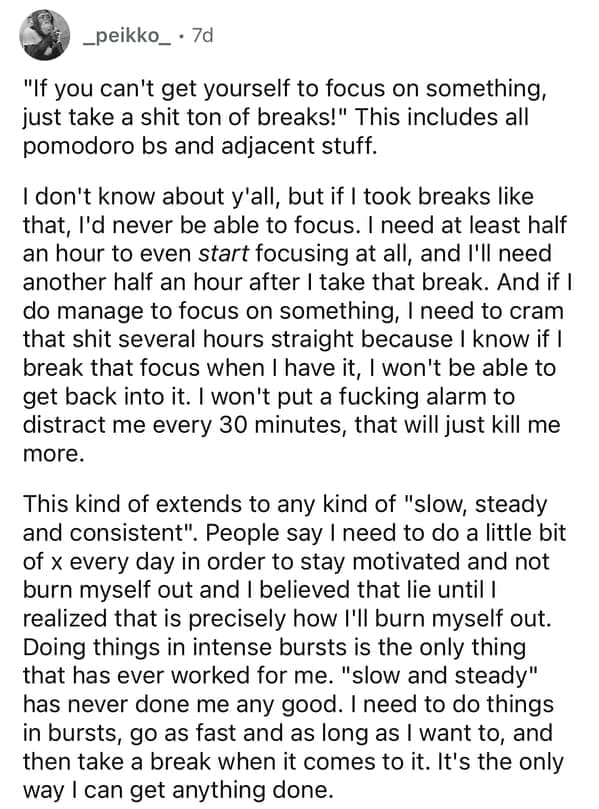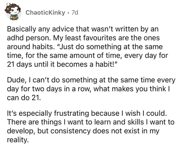 Now that you’ve skimmed the gallery, you felt the pattern: advice that sounds clever but collapses on contact with Tuesday. If “just focus” worked, we’d all be astronauts. Screenshot the gems, then file them under executive dysfunction tips (the real ones, not these).