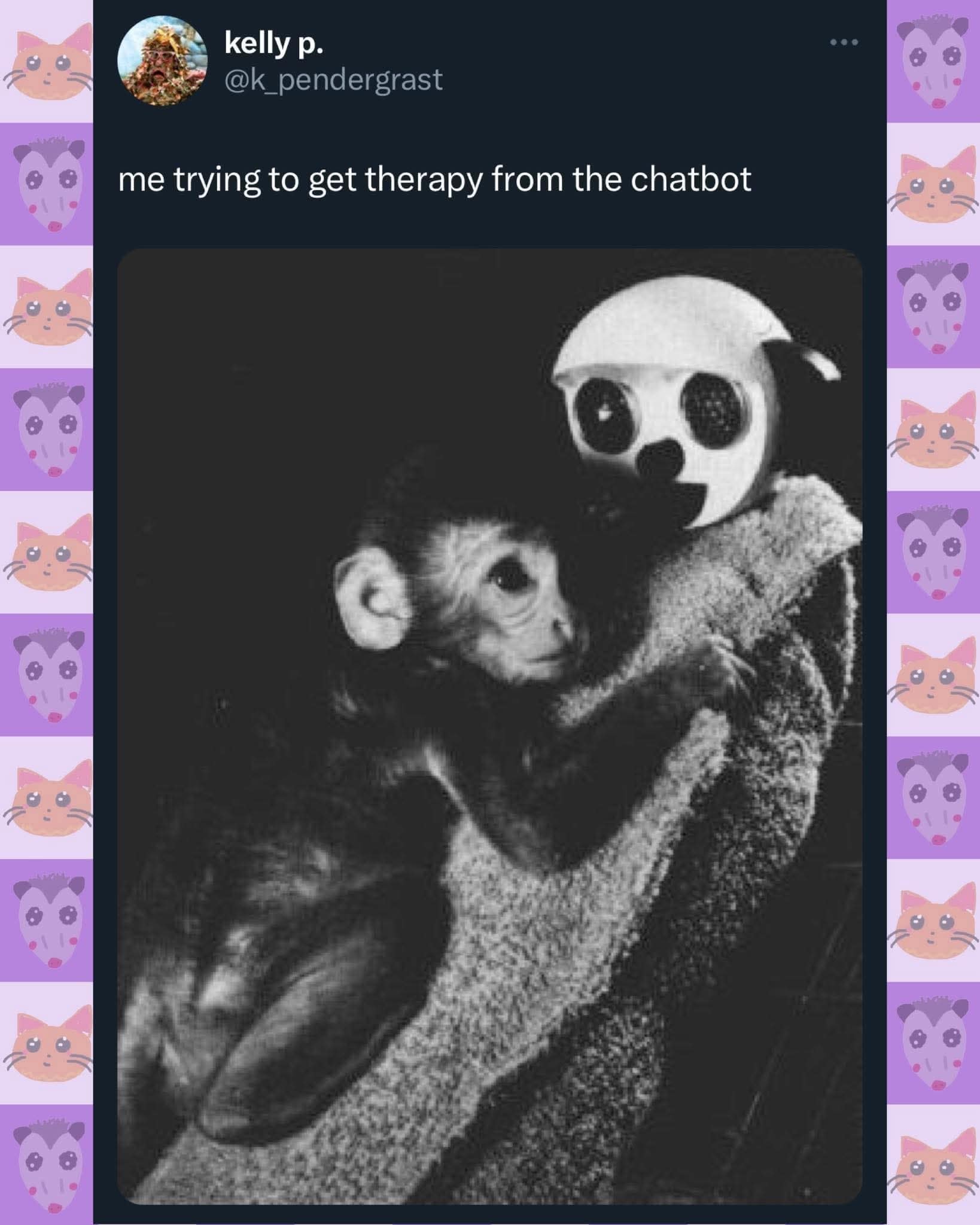 A cute and funny cat meme about being bad at flirting but good at being weird and random.