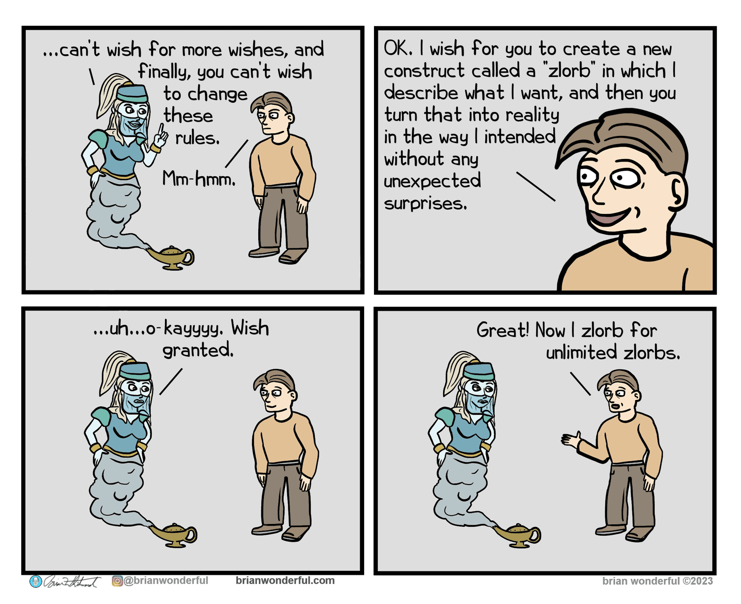 A timely and relatable comic from Brian Wonderful about the intersection of advanced AI writing and declining human literacy.