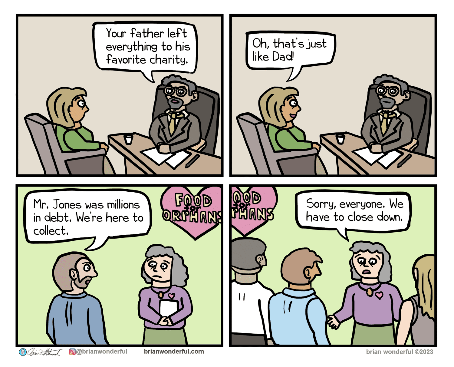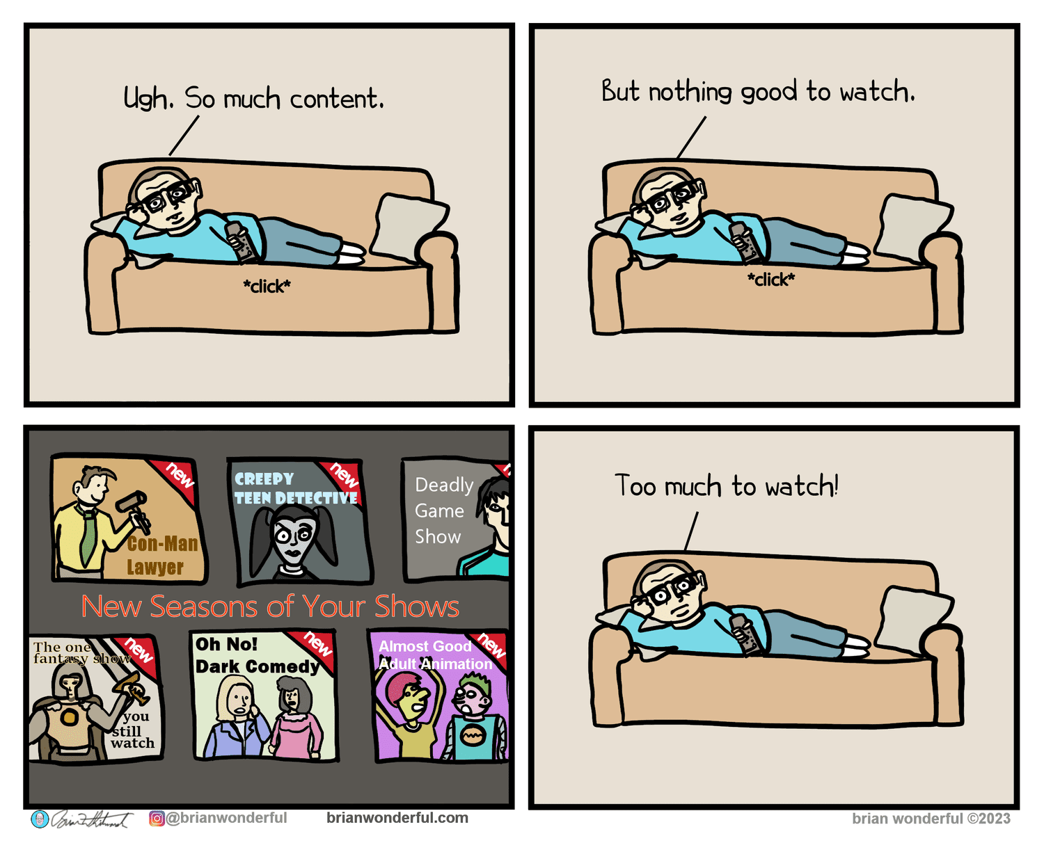 Now that you’ve toured this set of Brian Wonderful's relatable comics, you felt the rhythm: tidy setup, half-beat, clean turn. The best relatable comics translate life admin into sitcom scenes—calendar creep becomes a villain arc, snack diplomacy becomes lore. Save a few under gallery highlights for the 3 p.m. wobble.