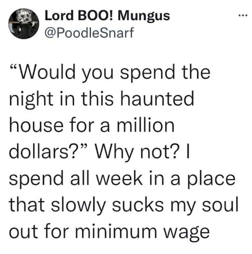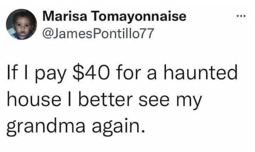 A funny tweet from a user who expects to die if they are paying $40 for a haunted house.