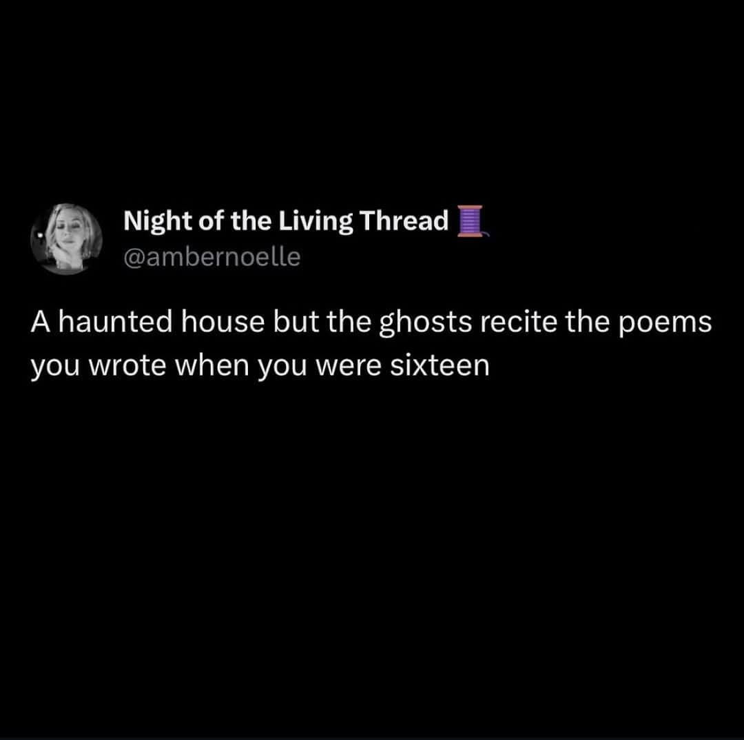 A funny tweet suggesting a haunted house made of photos of your exes because your dating life was a nightmare.