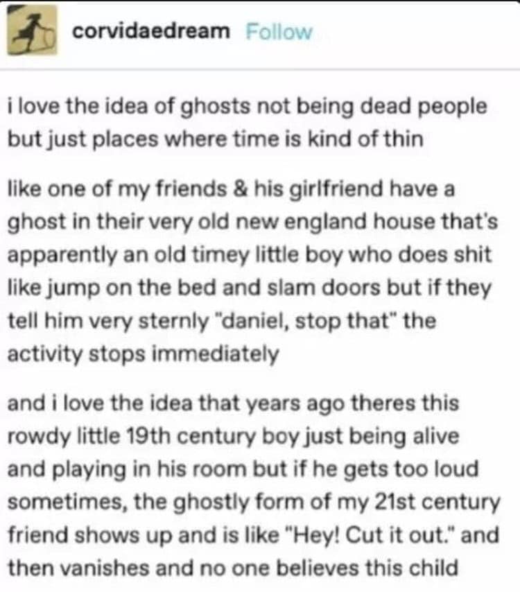A funny tweet that wonders what a modern ghost from 2007 would be like, complete with Britney Spears references.