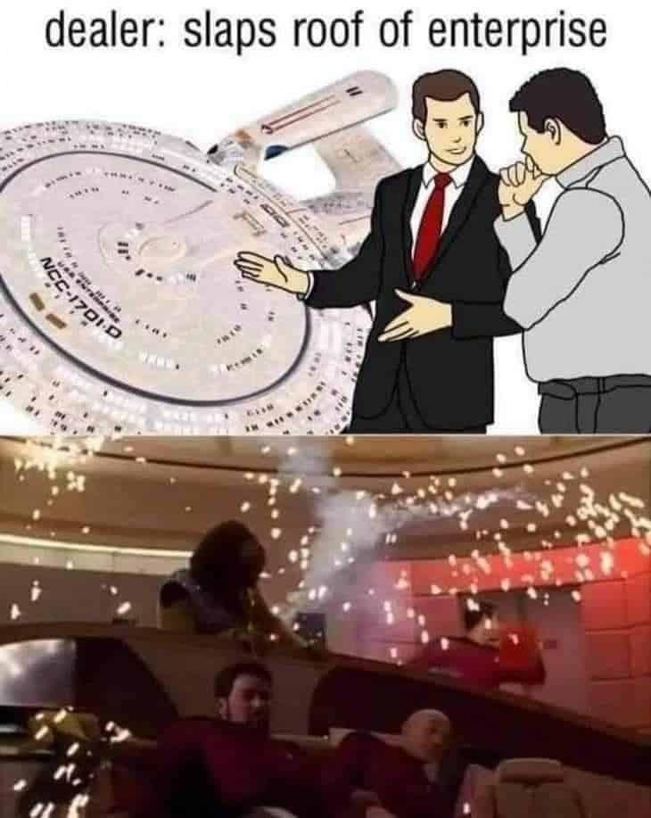 Trekkies love two things, lofty ideals and arguing about warp math like it pays rent. I am not judging. I am in the comments with a tricorder and a snack. This gallery salutes the ship that launched a thousand punchlines, the quotes we use as life advice and the screenshots we use as therapy. Somewhere in this intro I will use Star Trek memes exactly once and a small warp core in your ribcage will hum. The franchise is sincere and bonkers in equal measure, which is perfect for jokes. Captains glower, Vulcans sigh, and someone in a red shirt volunteers for a scenic route. We roast with love because the show taught us to. It gave us found family, ethics class, and the confidence to facepalm with Picard. If your week has a captain’s log and a replicator order, welcome home. Take your station, set sarcasm to stun, and remember, screenshots are the prime directive now.