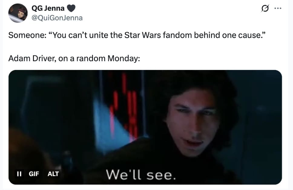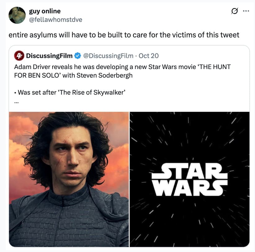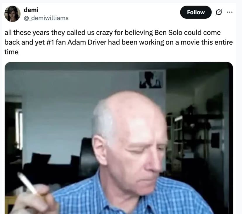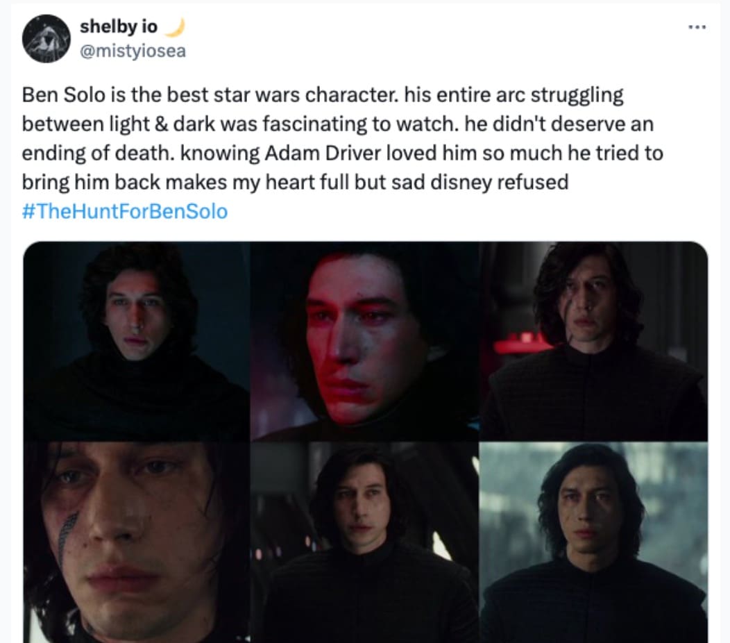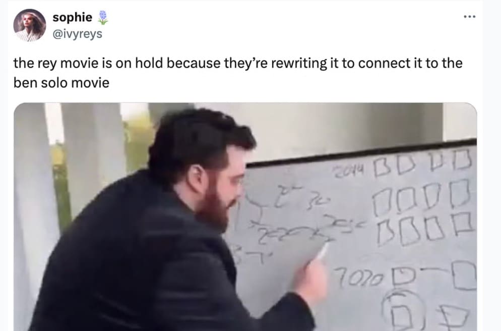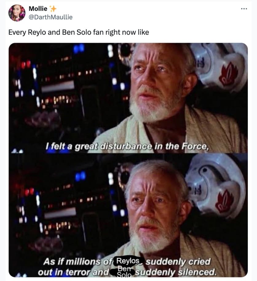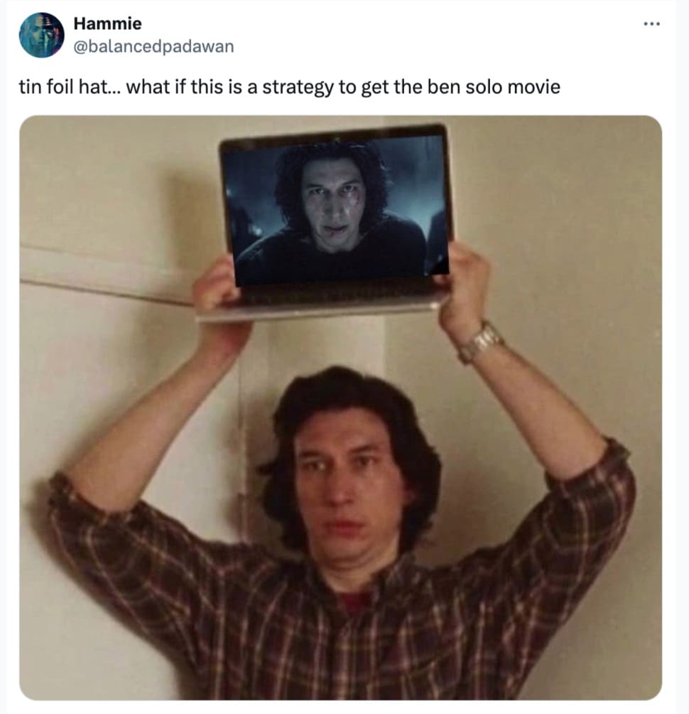 Fans love a what-if. A rejected passion project? That’s catnip. The second “Ben Solo sequel” and “Disney said no” met in the same sentence, timelines staged an emergency council. Hunt for Ben Solo memes are basically fandom’s group therapy: grief in the setup, punchline in the caption, healing in the share button.