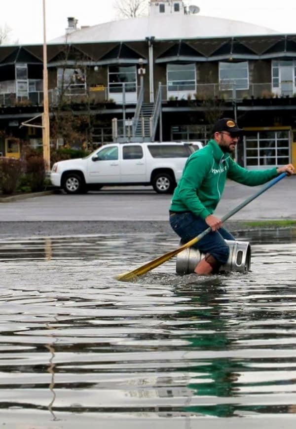 People intensely playing Monopoly board game while riding down a theme park log flume water ride.