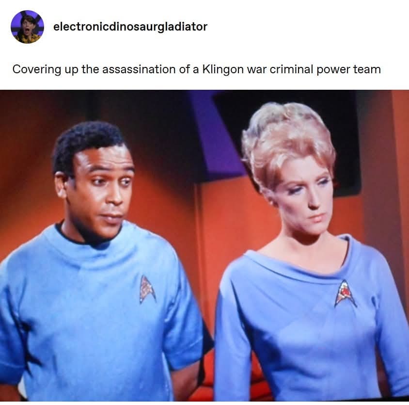 Those away-team frames delivered tiny epics—tricorders pretending to be anxiety monitors, redshirts negotiating with destiny, and transporters used as “Irish exits.” Several Star Trek screenshots doubled as office replies: concise, dry, and strangely comforting in fluorescent lighting.