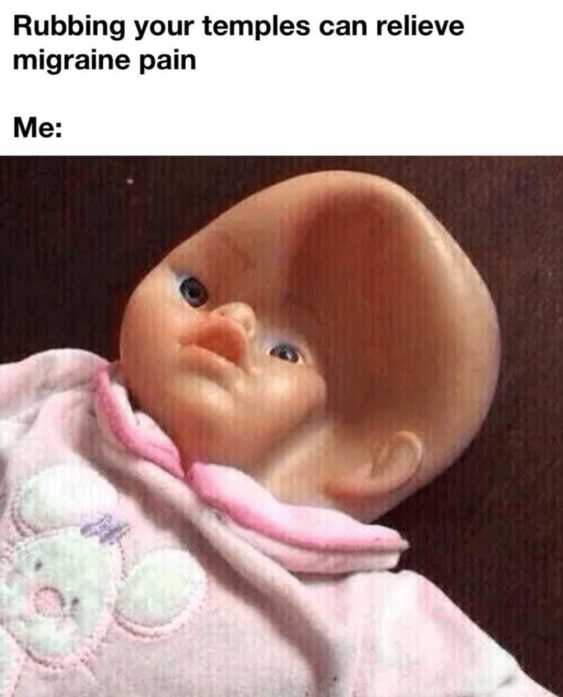 These memes are proof that humor can exist even in the middle of suffering. When your brain won’t stop pounding, laughter might not cure it—but it definitely distracts you long enough to survive the next wave.