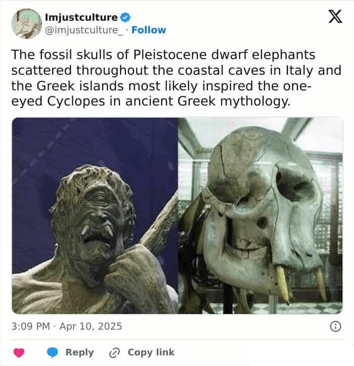 Today’s lineup is all signal, zero fluff: tweet screenshots that carry like headlines, fascinating photos with knockout captions, and cool facts images that outrun small talk. Pulls come from Imjustculture’s feed, plus spillover context from Wikipedia, Reddit, and a couple of museum blogs—clean crops, strong type, instant shareability.