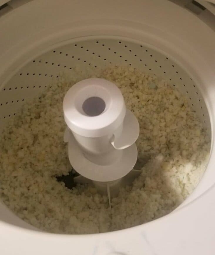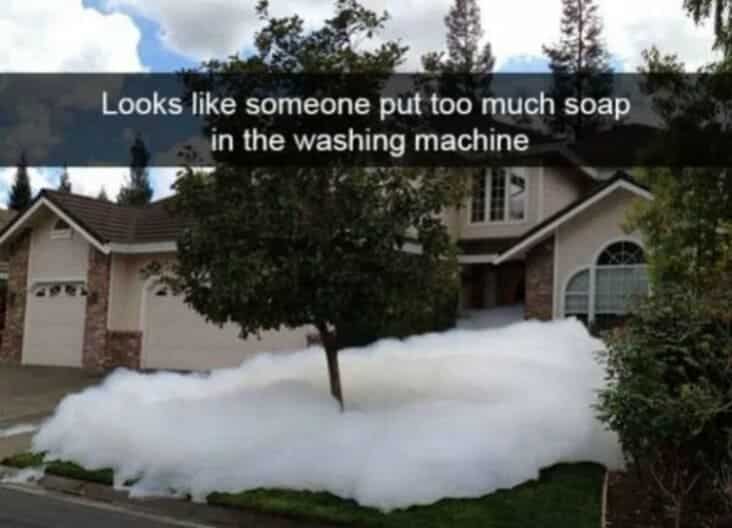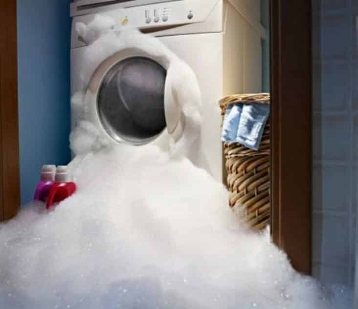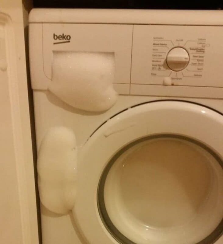 Laundry fail with excessive soap suds filling the entire washing machine drum
