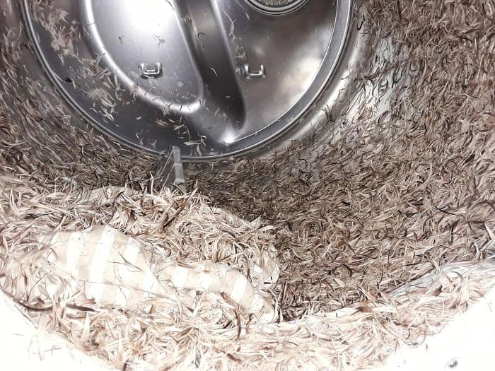 Laundry fail showing shredded clothes after a washing machine malfunction