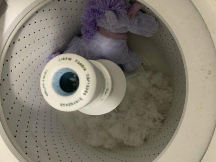 Laundry fail involving a purple toy horse disintegrating in the washer