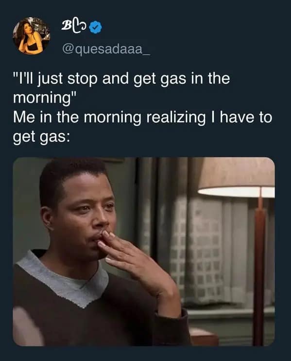 Hilarious meme about regretting not getting gas the night before