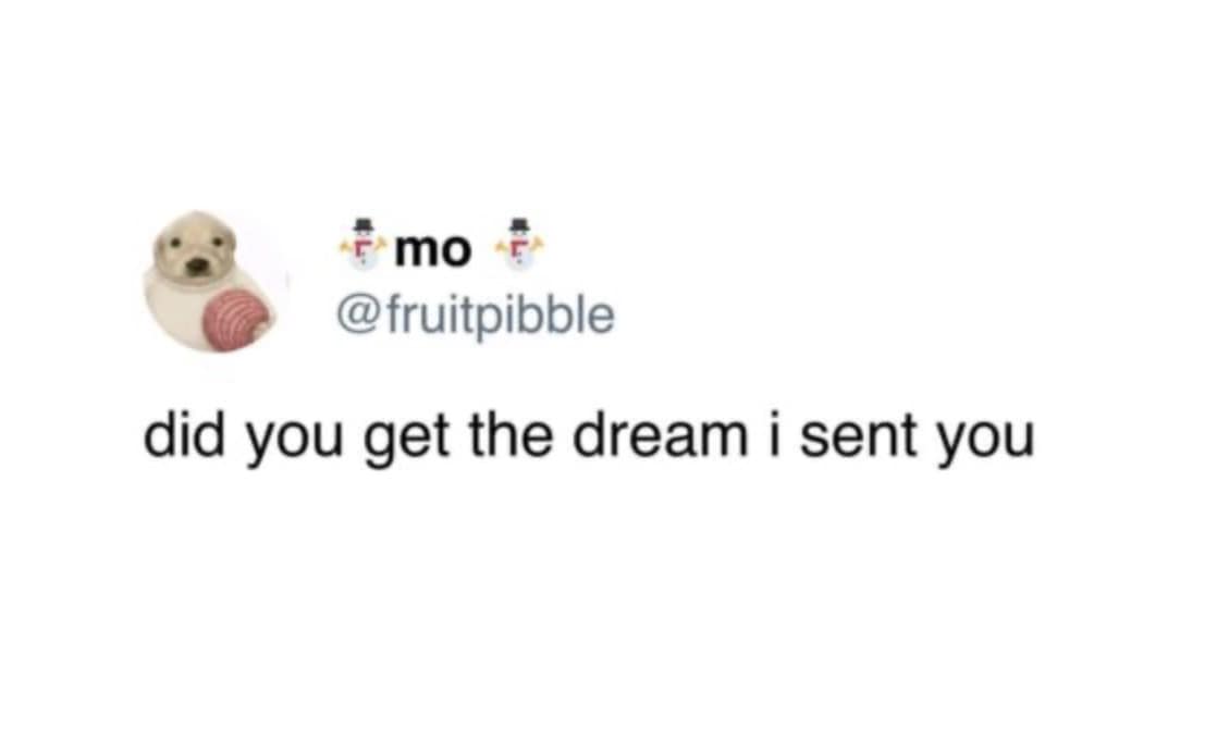 Tweet asking if you received the dream I sent you with dog icon.