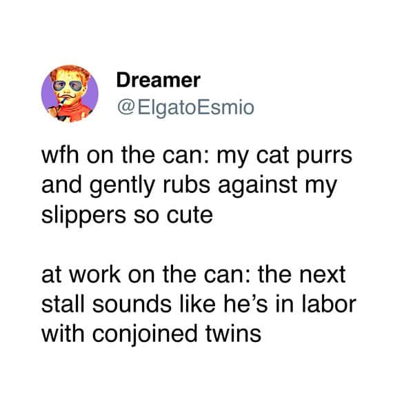 These work jokes nail the specific pain of trying to function in offices, Slack channels, and open floor plans that feel like social experiments. You will see work memes about pointless meetings, bathroom politics, and coworkers who refuse to maintain the illusion of professionalism. Office memes in this batch also tackle the bizarre rituals around calendar invites, fake enthusiasm, and the tiny pockets of joy hidden in canceled appointments. By the time you finish, you will be glad you are reading this from your couch and not under fluorescent lighting.