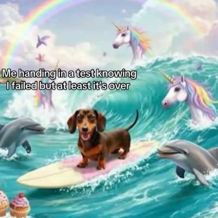Once the nostalgia switch flips, it’s over. You get the surfing dachshund surrounded by dolphins announcing “I failed but at least it’s over,” the horse sitting like a human to justify waiting until 8:30 to start anything, and the girl calmly holding a teacup with her foot while a caption asks why the USA invented the USB. These funny memes are burned into our retinas at this point.