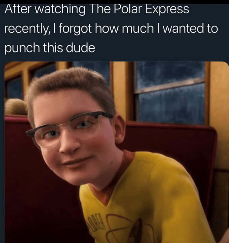 The kid-focused bits hit just as hard. Patrick Star acting as the star on a coral Christmas tree makes me want to ditch reality and spend December in Bikini Bottom. Meanwhile, the annoying kid in The Polar Express has become a universal villain; every funny Christmas pictures compilation finds room to roast him like a chestnut. This is the internet’s one bipartisan stance: that child must be muted.