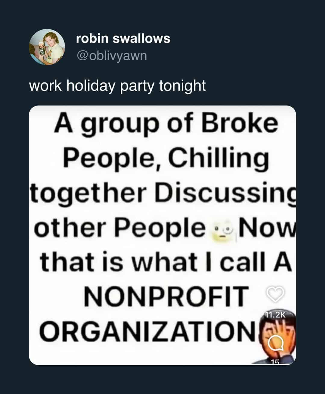 If this set made you side-eye your own invite, queue up more work related memes next time you need courage before the open bar.