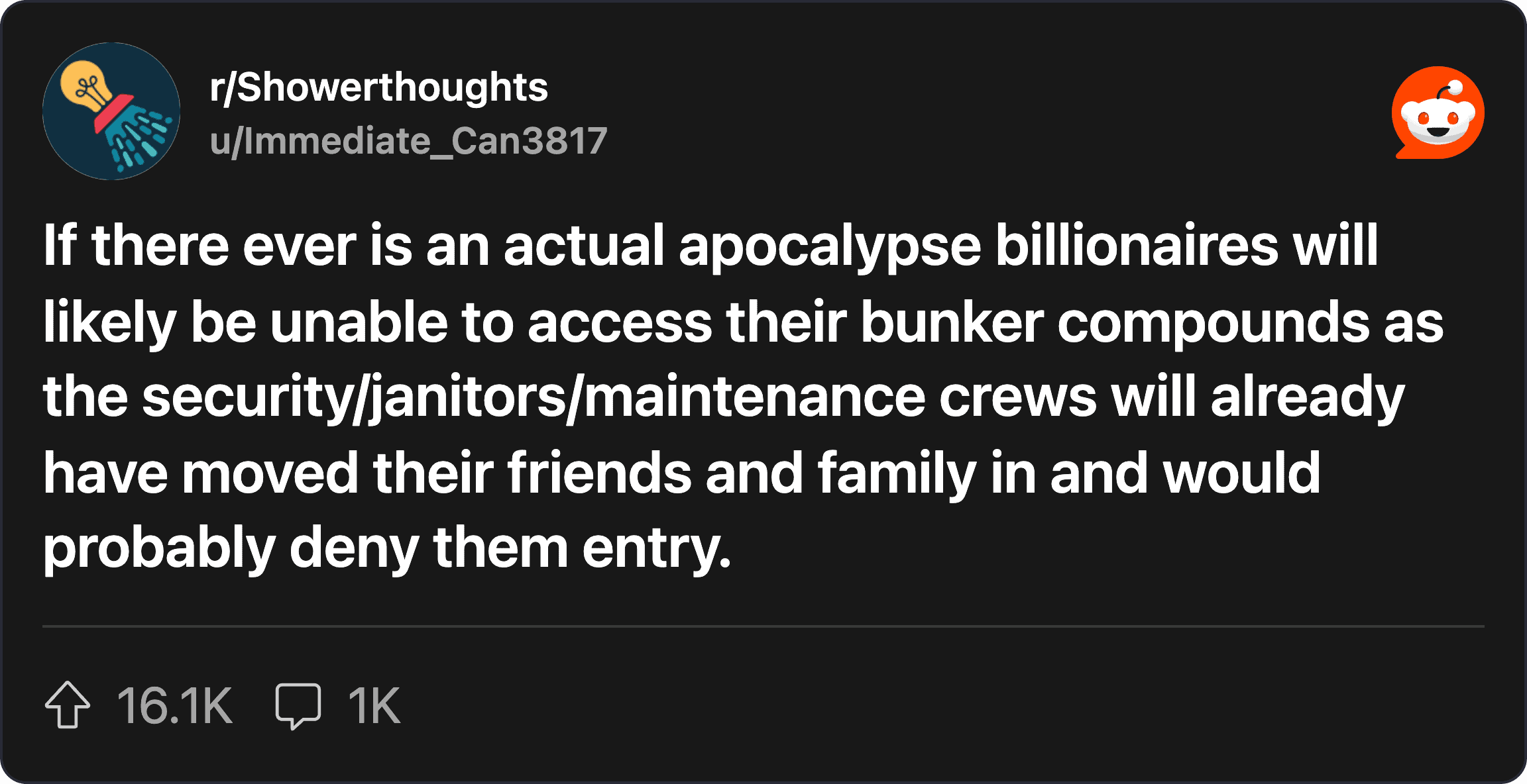 What really sells these funny shower thoughts is how low-stakes they are.