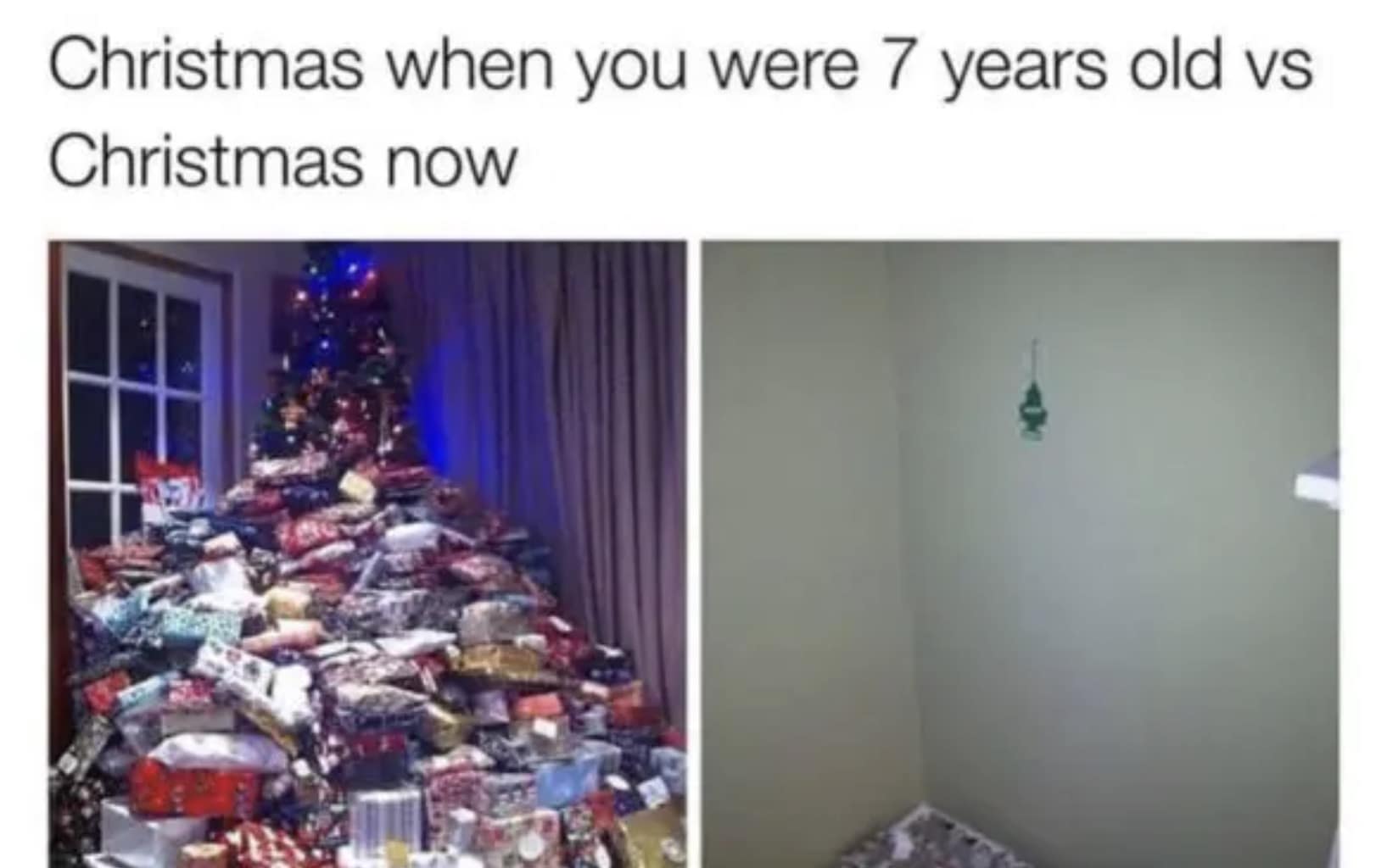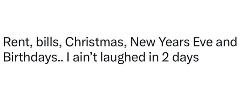 The Bird Box meme lands hardest because refusing to look at your bank balance is a survival tactic. And the childhood comparison hurts quietly. You remember piles of gifts and realize adulthood comes with receipts instead.