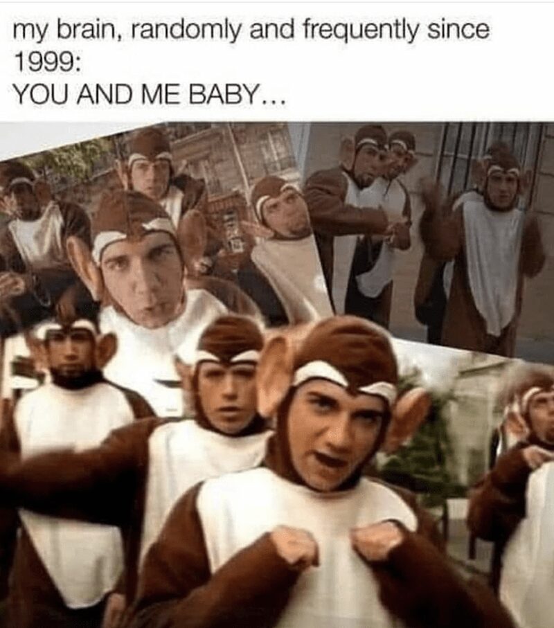 Okay, after seeing those 90s music memes, I’m convinced the Backstreet Boys lyric reflex is a diagnosable condition. The “therapist says tell me why” hamster one is too real—my coping mechanism is harmony, apparently.
