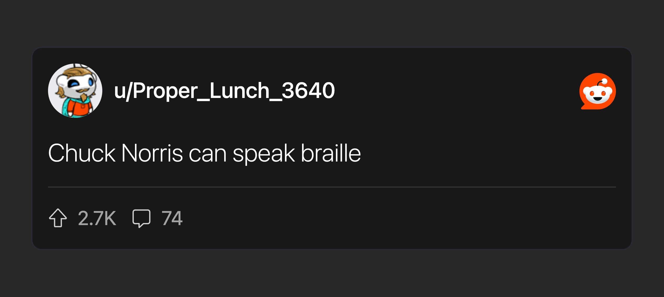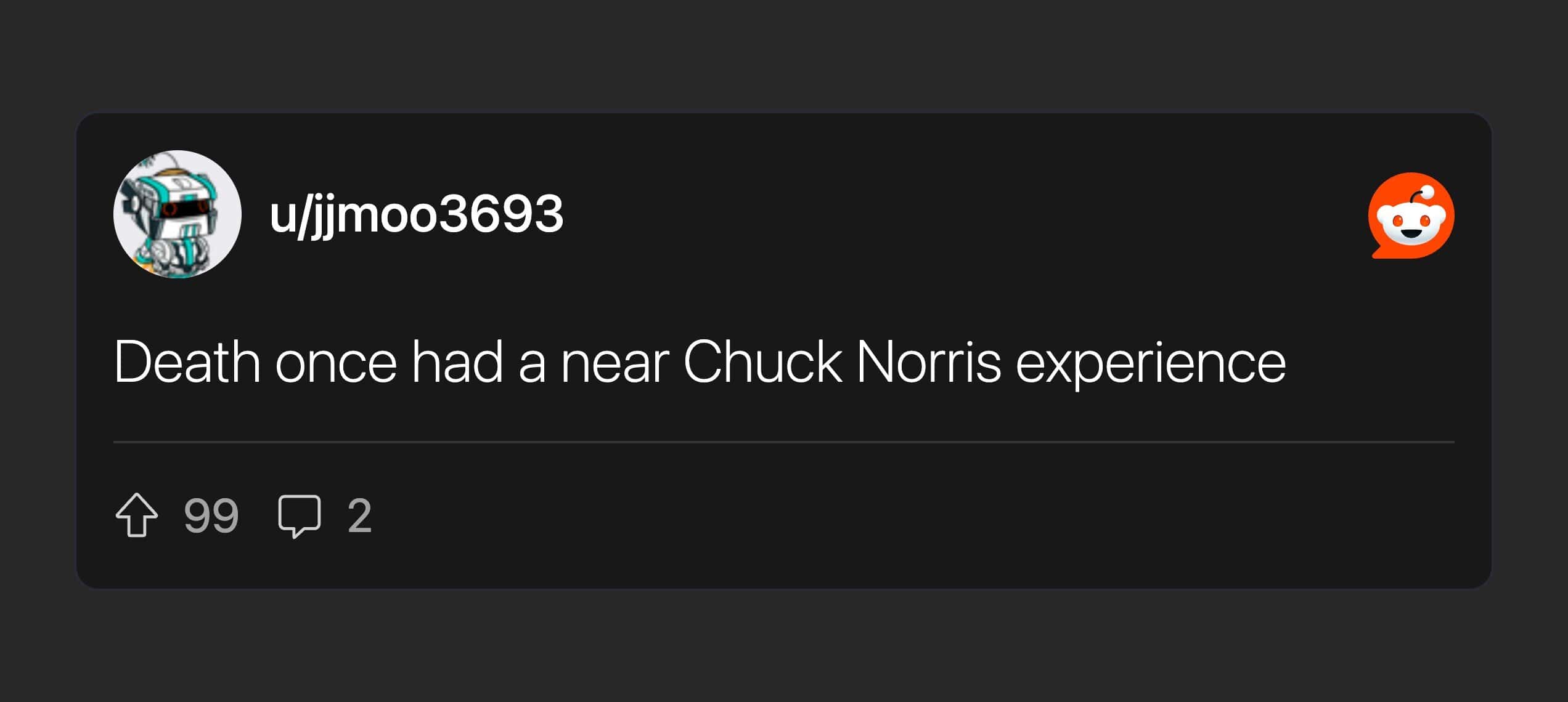 The comments are the real main event. “When Chuck Norris went to college he told his dad ‘you’re the man of the house now’” is such a perfect reversal it should come with a referee whistle. Same with the doctors congratulating his parents on his birth—because in this universe, Chuck arrived already in charge.
