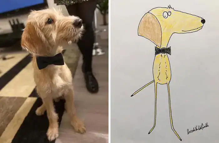 Also, let’s give credit to the pet owners who commissioned or created these. It takes a special kind of love to look at a sketch that resembles a goblin and say, “Yes, that is my beautiful Fluffy, frame it immediately.”