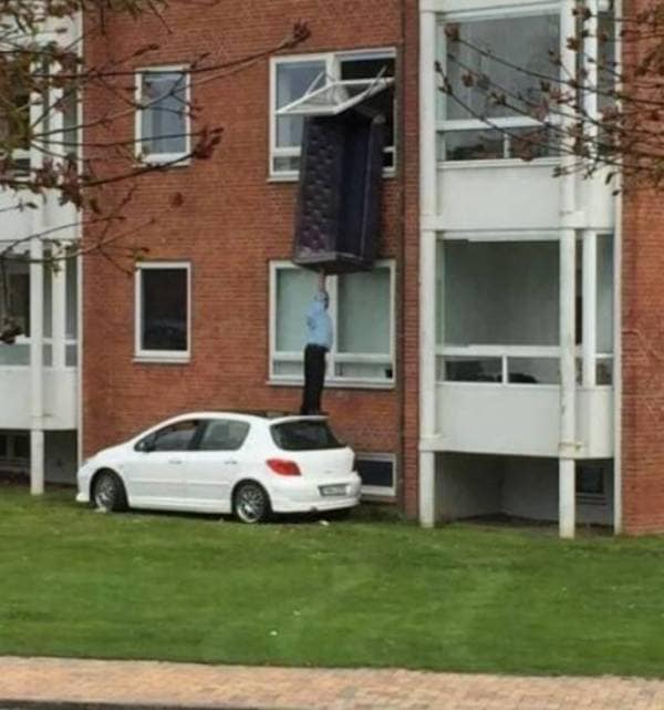 This gallery is a collection of bad ideas. Terrible ideas. Ideas that defy physics and common sense. We have people balancing fridges on moving cars. We have guys hanging out of windows with no ropes. It is the visual definition of “Hold my beer and watch this.” Please, for the love of all that is holy, do not try any of this at home. Or at work. Or anywhere.
