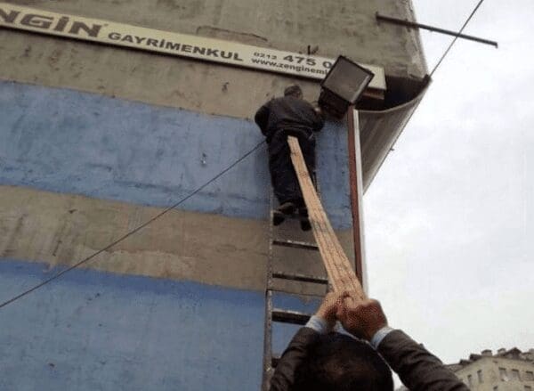I am sweating just looking at these. Truly. My palms are wet. There is a reason we have rules, people! There is a reason we have ladders and harnesses and “Do Not Stand On The Top Rung” stickers! But apparently, for some people, safety regulations are just “suggestions” that get in the way of getting the job done fast.
