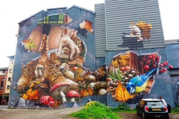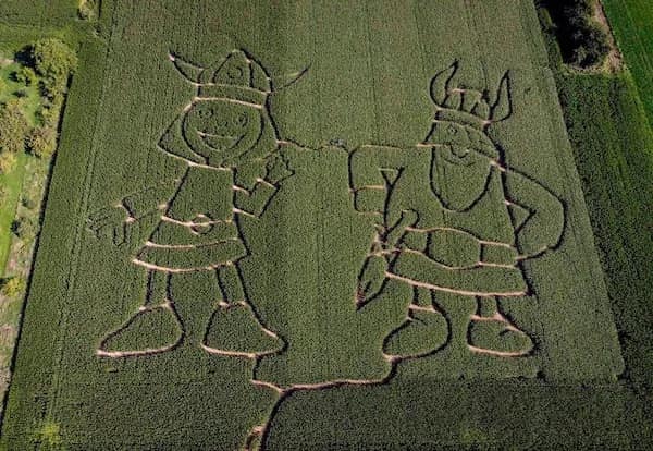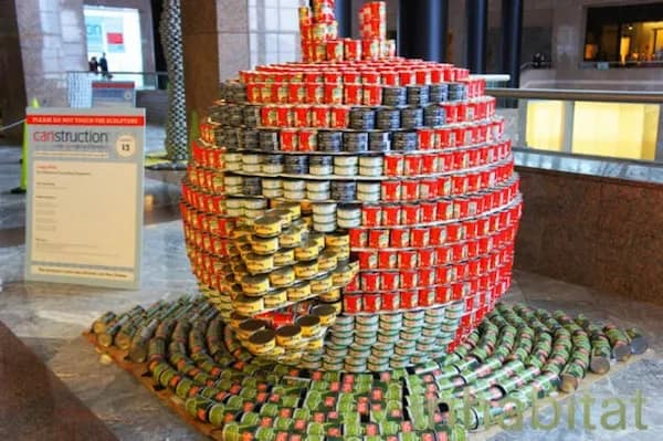Later, the driveway mural made with a pressure washer is a reminder that even cleaning can be competitive if talented people get involved. And the giant apple sculpture built from stacked food cans is the perfect combo of engineering brain and “why not make it enormous?”