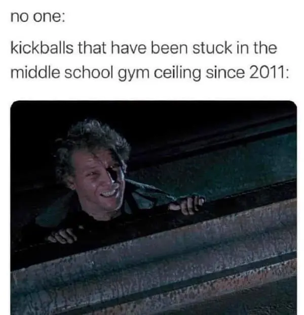 There’s also a vintage meme comparing Marv from Home Alone to kickballs stuck in a school gym ceiling since 2011, which is one of those perfect comparisons that makes you laugh because you can see it instantly. Those kickballs are still up there. Waiting. Watching. Becoming part of the building.