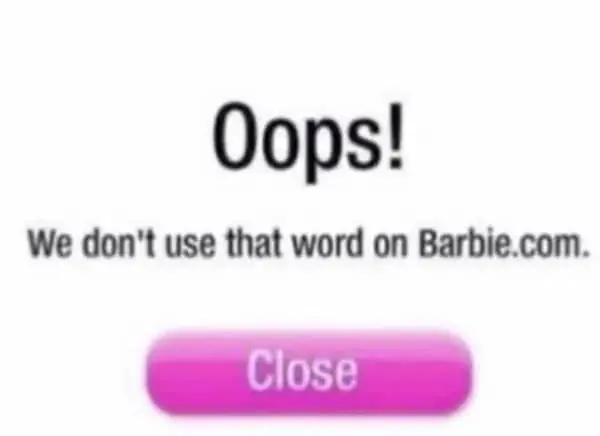 There’s also the Barbie.com error message about using a bad word, which hits like a nostalgia flash. Getting scolded by a kid’s website is a special kind of humiliation. It’s like being grounded by the internet itself.