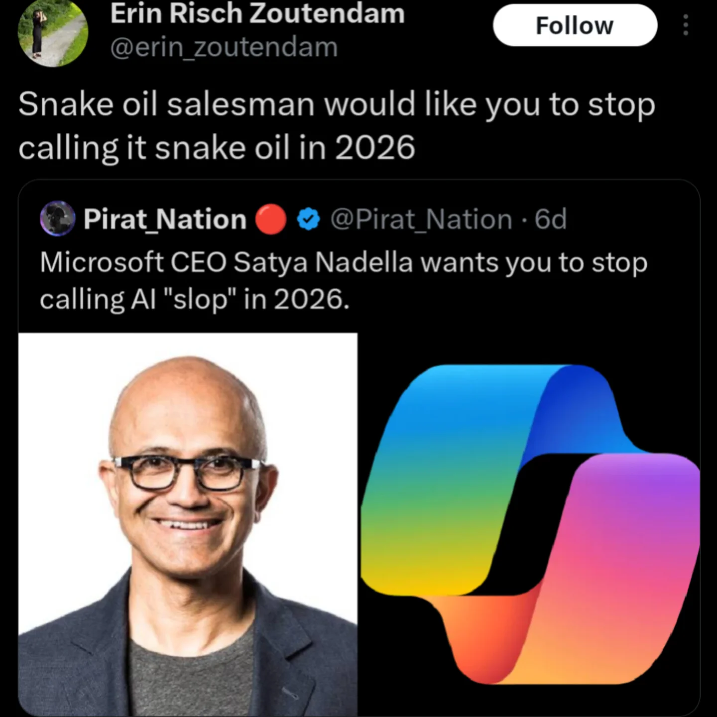 Also, the tweet roasting tech execs trying to stop people from calling AI output “slop” by basically rebranding it? That one belongs in a museum. Funny memes love popping marketing balloons. Snake oil, but with a new label.